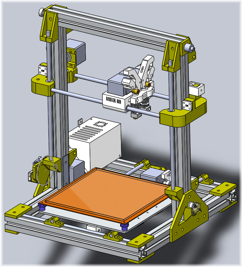 Verze již funkční. Na obrázku je s profily z REBEL II s tiskovou výškou 150mm. Při prodloužení kolmých stojek o 5cm jsou zachovány i délky vodících tyčí z původní verze RII.